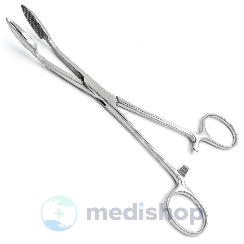 Корнцанг зігнутий, 180 мм Майєра, з кремальєрою