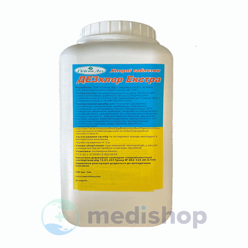 Дезинфицирующее средство ДЕЗхлор экстра, 1 кг в гранулах