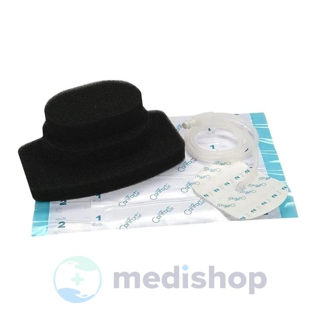 Этот ВАК комплект Confort — это готовый набор для терапии ран. Он разработан специально для небольших повреждений, порезов или послеоперационных швов. Главніый элемент набора — повязка 15х10х3см, именно она и создает вакуум. Благодаря этому воздействию рана заживает быстрее, вся лишняя жидкость удаляется, а ткани начинают восстанавливаться. Кстати, в наборе есть все необходимые аксессуары, чтобы сразу начать лечение.