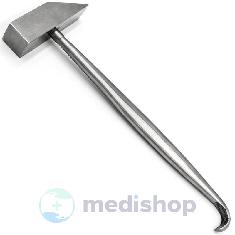 Этот анатомический молоток разработан специально для работы в патологической анатомии. Он помогает получать точные результаты анатомических вскрытий. Дополнительно оснащен крючком. С его помощью можно проводить манипуляции с тканями без смены инструмента.